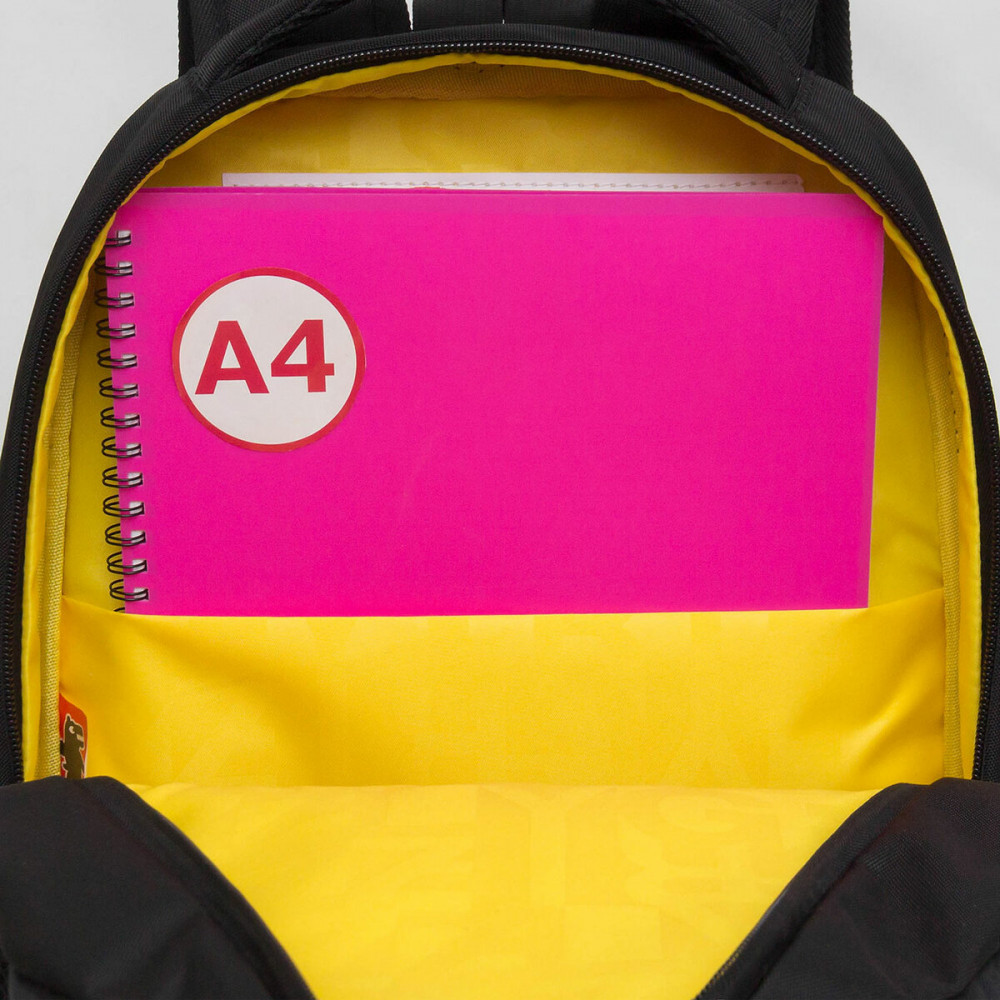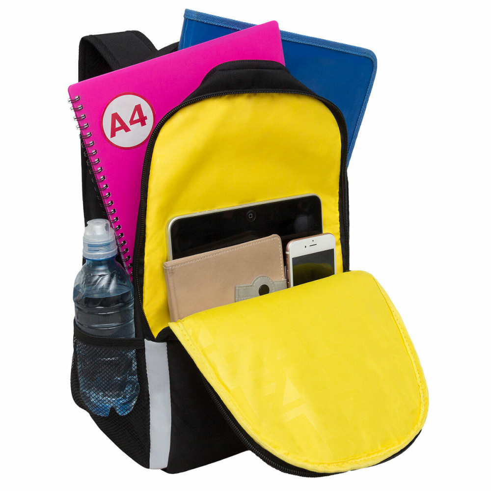 В рюкзаке два отделения для учебных пособий формата А4. В основном отделении есть дополнительный внутренний карман для папок. Имеются боковые кармашки для воды.