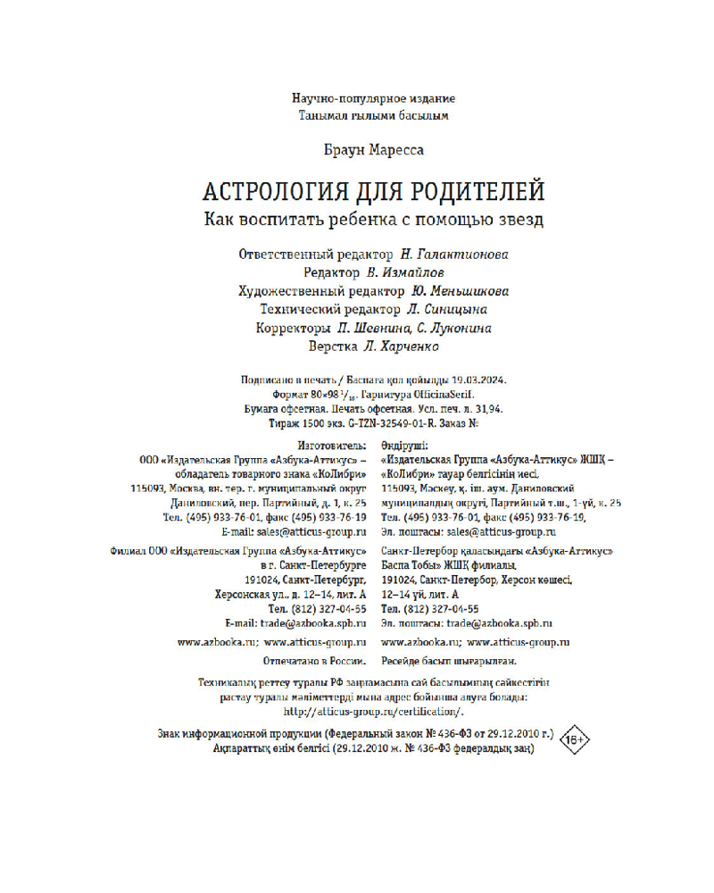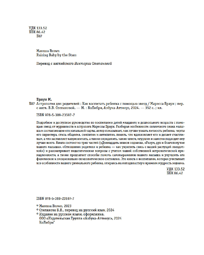 💳 Оплатить за товар можно при получении 🇰🇿 Есть бесплатная доставка по Казахстану от 1 дня 🎁 Копите бонусы с каждой покупки Серия: Тайные знания Подробное и доступное руководство по воспитанию детей младшего и дошкольного возраста с помощью звезд от астролога и журналиста Марессы Браун. Разбирая особенности солнечного знака малыша и составляющие его натальной карты, автор показывает, как лучше узнать личность ребенка, черты его характера, стиль общения, симпатии и антипатии, понять, что вдохновляет его и делает счастливым, а что заставляет капризничать, а также определить, какие книги, игрушки и занятия подходят ему лучше всего. Книга состоит из трех частей («Двенадцать знаков зодиака», «Разум, дух и благополучие вашего малыша», «Отношения родителя и ребенка — как укрепить связь с вашей растущей звездочкой») и рассматривает педагогические вопросы с учетом вашей собственной астрологической принадлежности, а также предлагает способы помочь самовыражению вашего малыша и улучшить его физическое и эмоционально-психологическое состояние. Это книга о воспитании, которая учитывает все особенности вашего уникального ребенка, опираясь на неподвластную времени мудрость зодиака. |