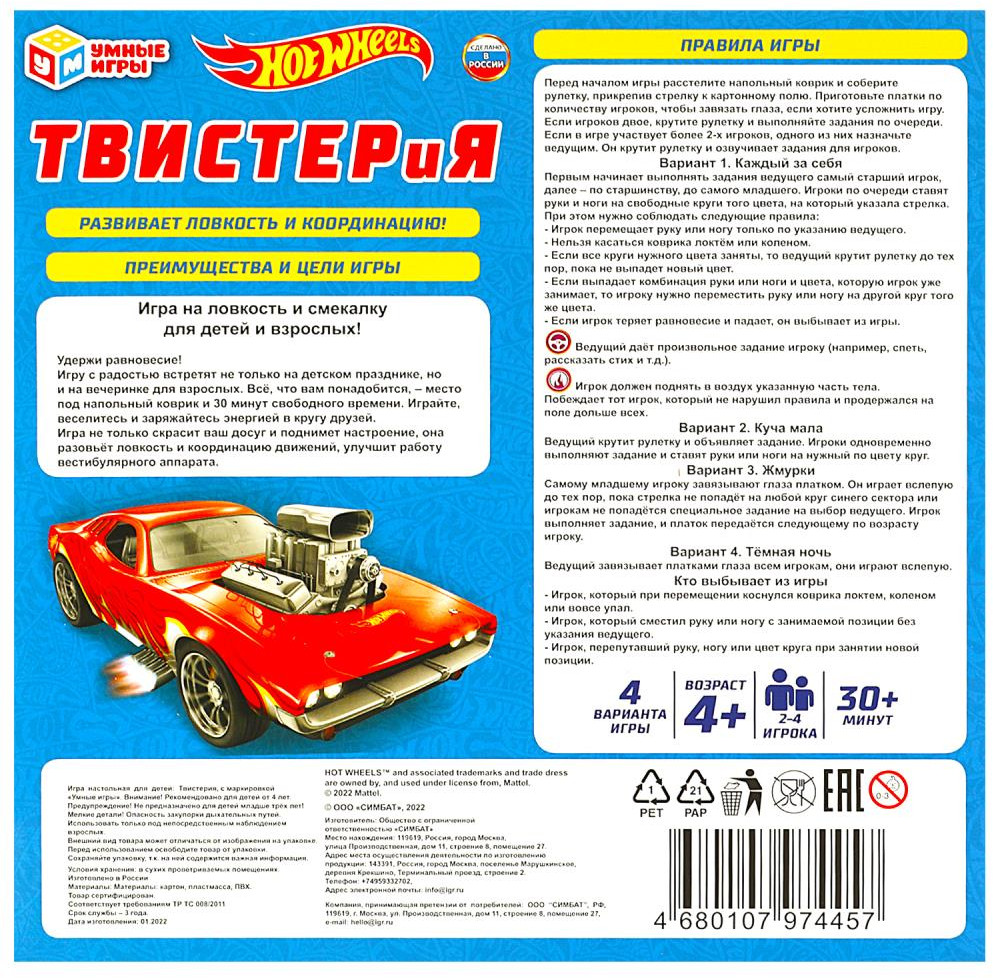 💳 Оплатить за товар можно при получении 🇰🇿 Есть бесплатная доставка по Казахстану от 1 дня 🎁 Копите бонусы с каждой покупки Серия: Hot Wheels Игра «ТВИСТЕРиЯ. Hot Wheels» ТМ «Умные игры» — весёлое развлечение для детей и взрослых! |