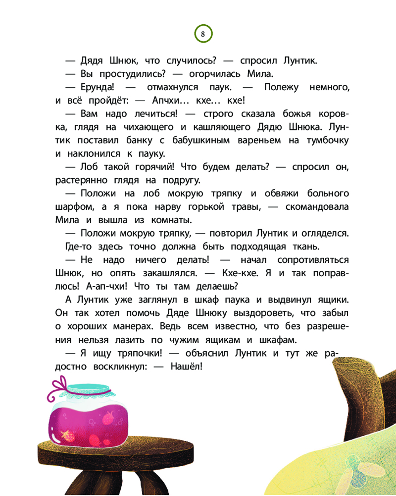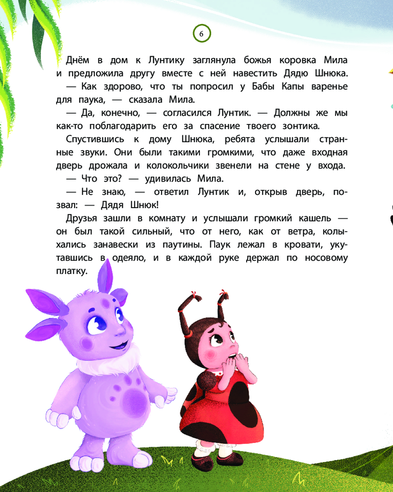 В данный момент этот товар отсутствует в продаже. Возможно, у нас найдется аналогичный или похожий товар здесь. Серия: Лунтик. Книги по фильмам Сборник историй о любознательном и беззаботном малыше, которому ещё так много предстоит узнать о мире! Лунтика и его верных друзей — Пчелёнка, Милу и Кузю, вновь ждут приключения и неожиданные встречи. На этот раз лунный гость отправится вместе с Дядей Шнюком на поиски вдохновения; узнает, какие таинственные жители обитают в заброшенном колодце; устроит рассвет, чтобы вызволить подругу Милу из необычной цветочной ловушки; научится принимать гостей и узнает, что забота — самое лучшее лекарство от простуды.