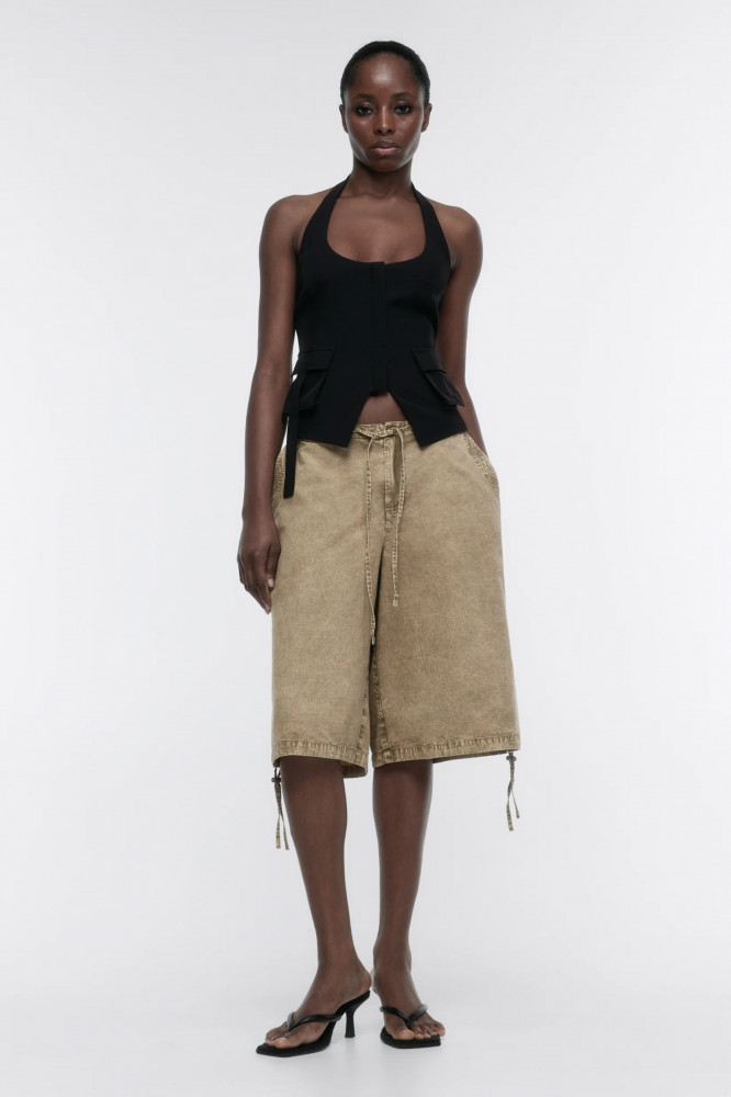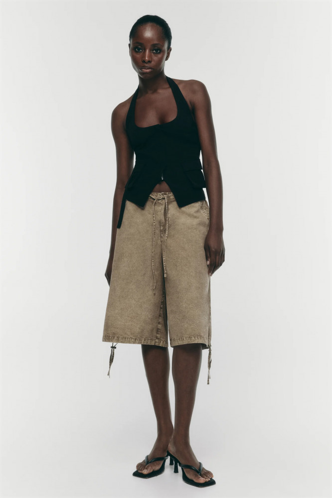Модные дома возвращают в тренды бриджи. Легкие хлопковые шорты-бриджи из новой летней коллекции станут основой твоих образов. Сочетай их с жилетками на голое тело, легкими рубашками, футболками и короткими топами. Носи бриджи в офис с блузками, лодочками и пиджаками или просто каждый день в Y2K образах с короткими майками и футболками. Создавай самые удобные и стильные аутфиты на каждый день с этими шортами-бриджами, которые составят идеальную основу твоего гардероба на теплое время года.