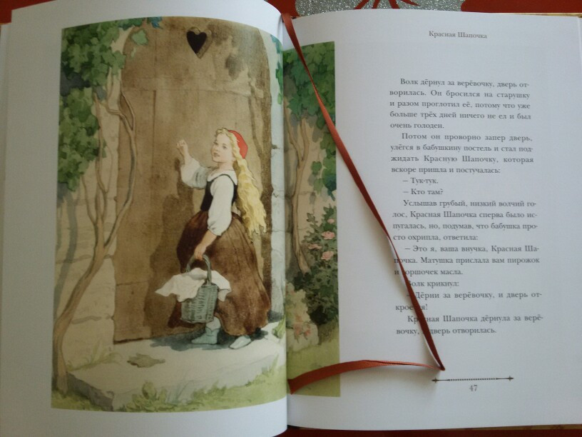 В детстве у меня была книга про Красную шапочку с такими же рисунками. Мне нравилось их разглядывать. Книга отличная, содержит 5 сказок, имеется закладка, толщина книги 1 см.