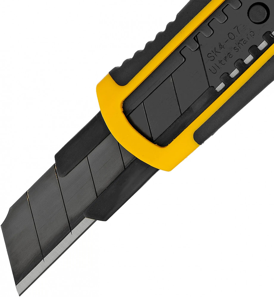 💳 Оплатить за товар можно при получении 🇰🇿 Есть бесплатная доставка по Казахстану от 1 дня 🎁 Копите бонусы с каждой покупки Нож Denzel выполнен в корпусе из ABS-пластика со вставками из термопластичной резины TPR, оснащен сменным лезвием шириной 18 мм, изготовленным из стали SK4 по технологии UltraSharp, и торцевым зажимом. Сверхострое выдвижное лезвие легко режет линолеум, ковролин, бумагу, обои, картон и другие листовые материалы. Нож будет полезен для проведения профессиональных ремонтных и отделочных работ, пригодится также в домашнем хозяйстве. |