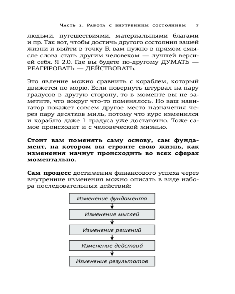 Любое отклонение от вектора вашей текущей картины мира на пару градусов способно на горизонте 5 лет качественно поменять вашу реальность. Если вы держите в руках эту книгу, то скорее всего, вы хотите из точки А прийти в точку B, где будет ваша лучшая жизнь, наполненная яркими событиями, интересными людьми, путешествиями, материальными благами и пр. Так вот, чтобы достичь другого состояния вашей жизни и выйти в точку B, вам нужно в прямом смысле слова стать другим человеком — лучшей версией себя. Я 2.0. Где вы будете по-другому думать — реагировать — действовать. |