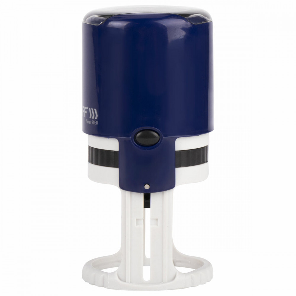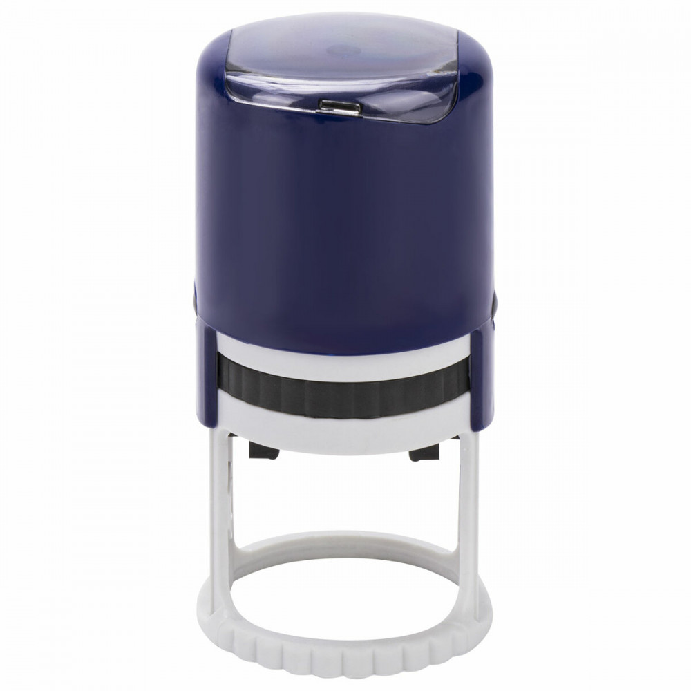 Платформа печати позволяет набирать, а при необходимости оперативно менять до 2 кругов текста и оставляет оттиск размером 40 мм синего цвета. Корпус изготовлен из качественного износоустойчивого пластика. Верхняя часть корпуса выполнена в темно-синем цвете, а нижняя часть — в светло-сером. Надежные фиксаторы, располагающиеся по бокам, позволяют удерживать подвижную часть штампа в статичном положении. В специальное прозрачное окно на верхней части корпуса можно вставить образец текста для его идентификации в процессе использования печати. Замена подушки не составляет труда. На механизм распространяется пожизненная гарантия. Срок годности сменной подушки составляет 6 лет (дата изготовления указана на упаковке).