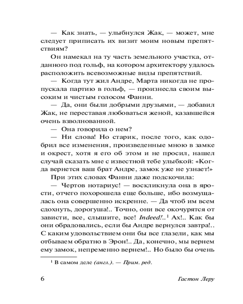 💳 Оплатить за товар можно при получении 🇰🇿 Есть бесплатная доставка по Казахстану от 1 дня 🎁 Копите бонусы с каждой покупки Серия: Эксклюзивная классика Андре де Лабосьер, богатый вдовец и промышленник, спешно уезжает в Бордо, доверив двух маленьких детей, роскошный замок Ла Розрэ и управление фабрикой своему брату Жаку и его жене Фанни. Пять лет от него не было никаких вестей, пока однажды, во время званого ужина в Ла Розрэ, группа гостей, увлекающихся спиритизмом, не решает провести сеанс, во время которого к ним является дух Андре и сообщает, что был убит... Жак и Фанни думают, что это чья-то глупая шутка. Но как объяснить загадочное исчезновение Андре? И откуда призраку известны обстоятельства его гибели? |