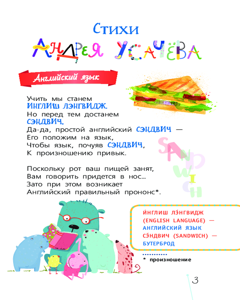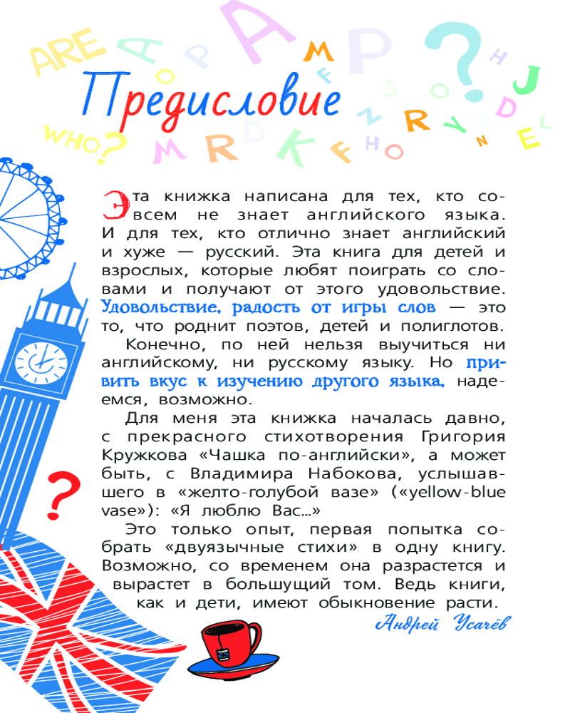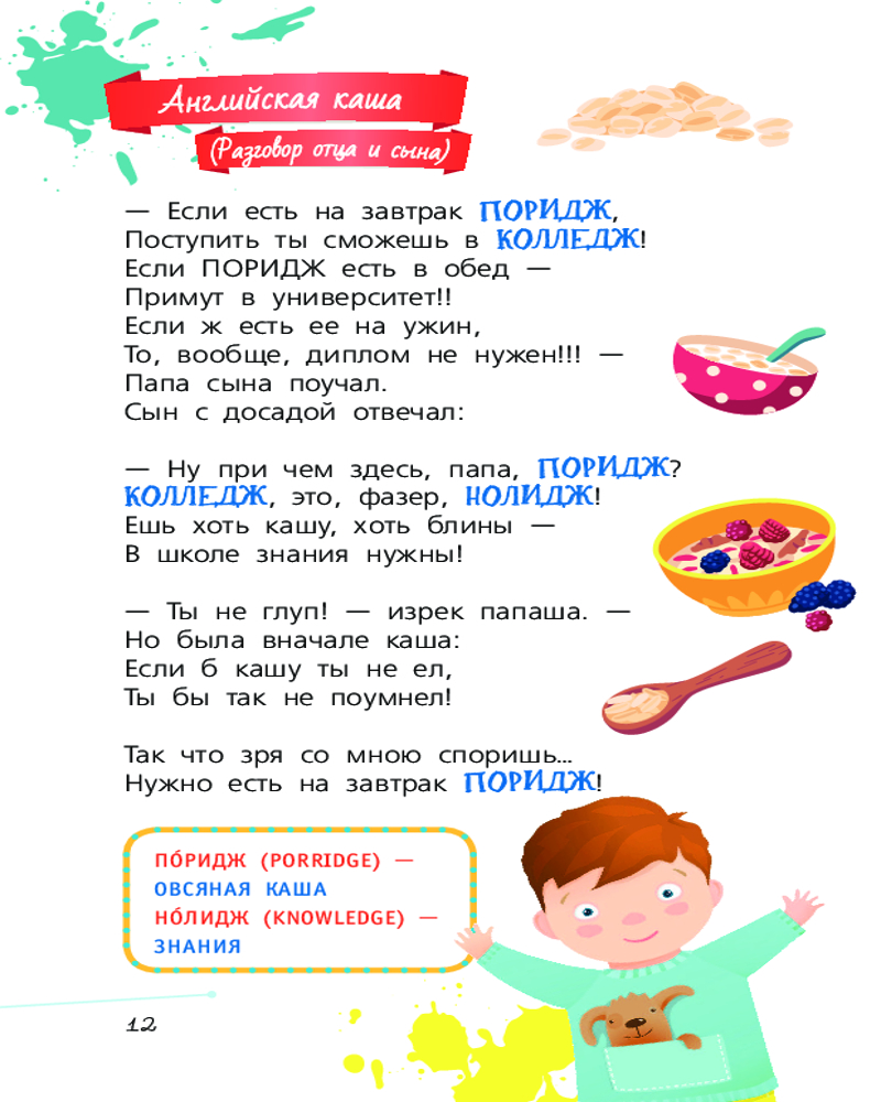 💳 Оплатить за товар можно при получении 🇰🇿 Есть бесплатная доставка по Казахстану от 1 дня 🎁 Копите бонусы с каждой покупки Серия: Звёздный научпоп Учим английский язык в веселой компании замечательных поэтов Андрея Усачёва, Галины Дядиной, Григория Кружкова и Петра Синявского. И не просто скучаем над учебником или словарем, а радуемся и подпрыгиваем от удовольствия, ловим правильную интонацию, распеваем стихи во весь голос, легко запоминаем слова и выражения. Никакого стресса от учебы и успех нам всем (детям и родителям) просто гарантирован! |