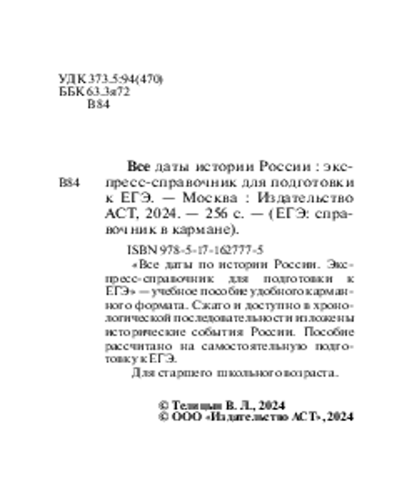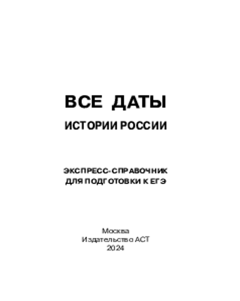 Все даты истории России. Экспресс-справочник для подготовки к ЕГЭВ данный момент этот товар отсутствует в продаже. Возможно, у нас найдется аналогичный или похожий товар здесь. Серия: ЕГЭ: справочник в кармане «Все даты по истории России. Экспресс-справочник для подготовки к ЕГЭ» — учебное пособие удобного карманного формата. Сжато и доступно в хронологической последовательности изложены исторические события России. Пособие рассчитано на самостоятельную подготовку к ЕГЭ. |
