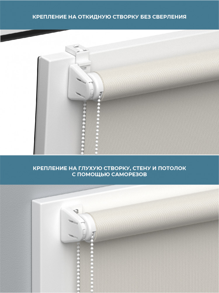 • легкий монтаж — без сверления (для штор шириной до 120 см) на откидную створку окна или на стену/потолок с помощью шурупов;