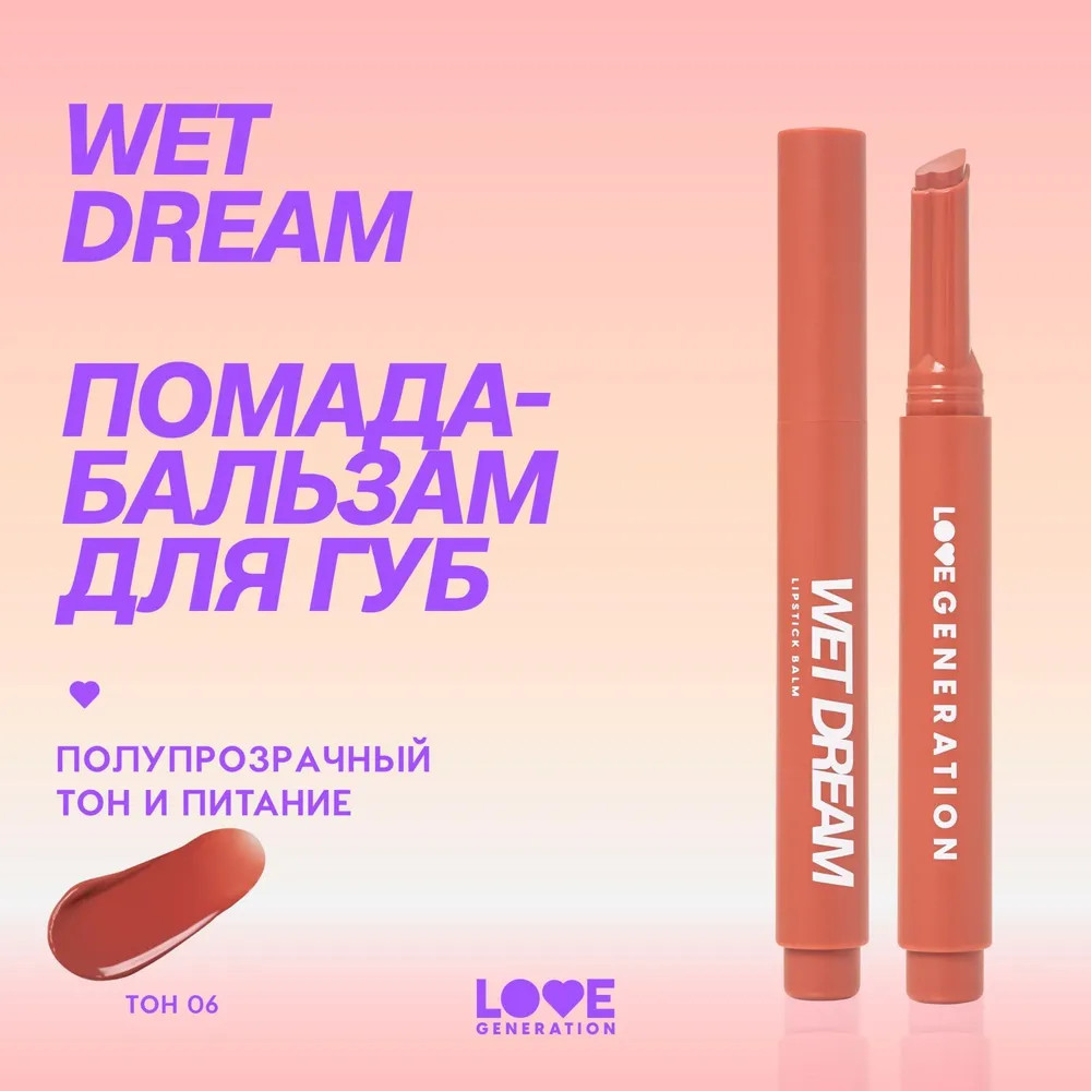 Love Generation Помада-бальзам для губ «Wet Dream», тон 06 Peachgasm