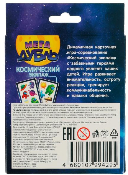 | Умные игры Игра карточная «Мега Дубль. Космический экипаж»