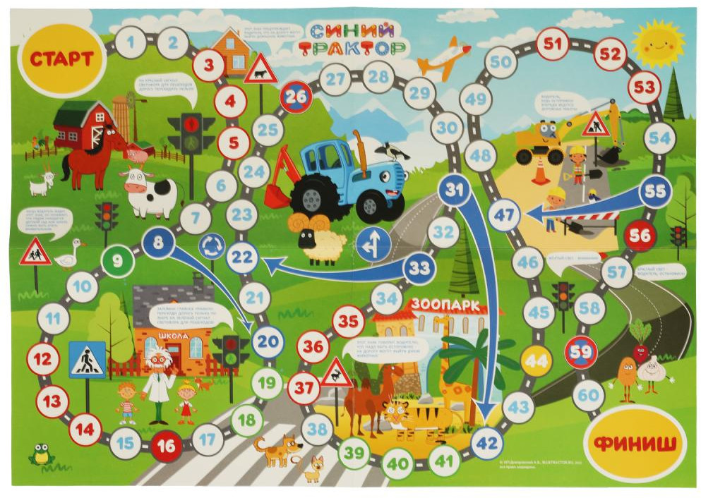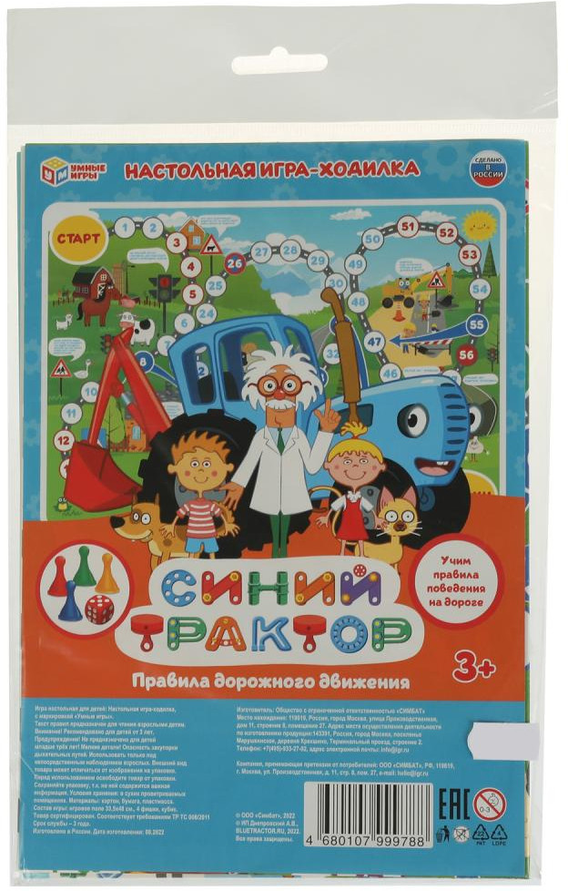 Настольная игра-ходилка в блистере «Синий Трактор. Правила дорожного движения» ТМ «Умные игры» – это увлекательное путешествие в мир цифр и ПДД вместе с любимыми героями одноимённого мультсериала. Цель игры.