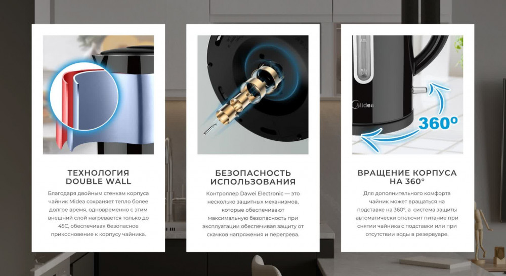 Дополню свой предыдущий отзыв. Чайник прошёл техническую экспертизу и получено заключение: производственный брак. Продавец вернул деньги за чайник. Благодарю за проведённую работу и доброжелательность к покупателю. Даже попав на брак данного товара, считаю Midea качественным товарным знаком. Пользуюсь техникой Мidea давно и очень довольна техникой.