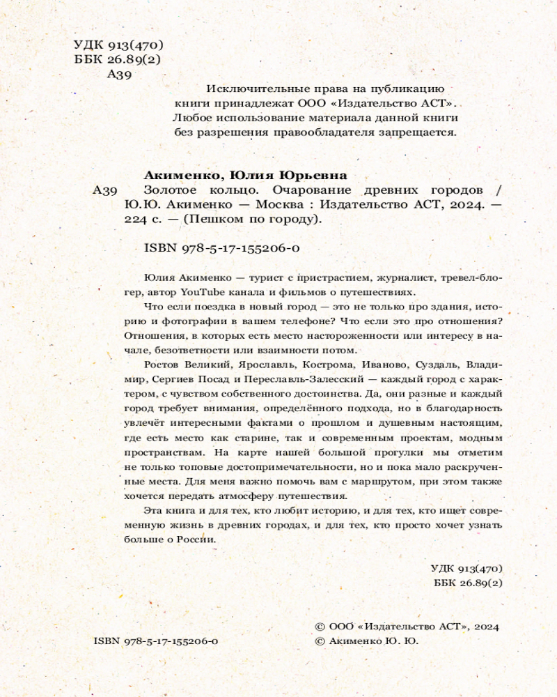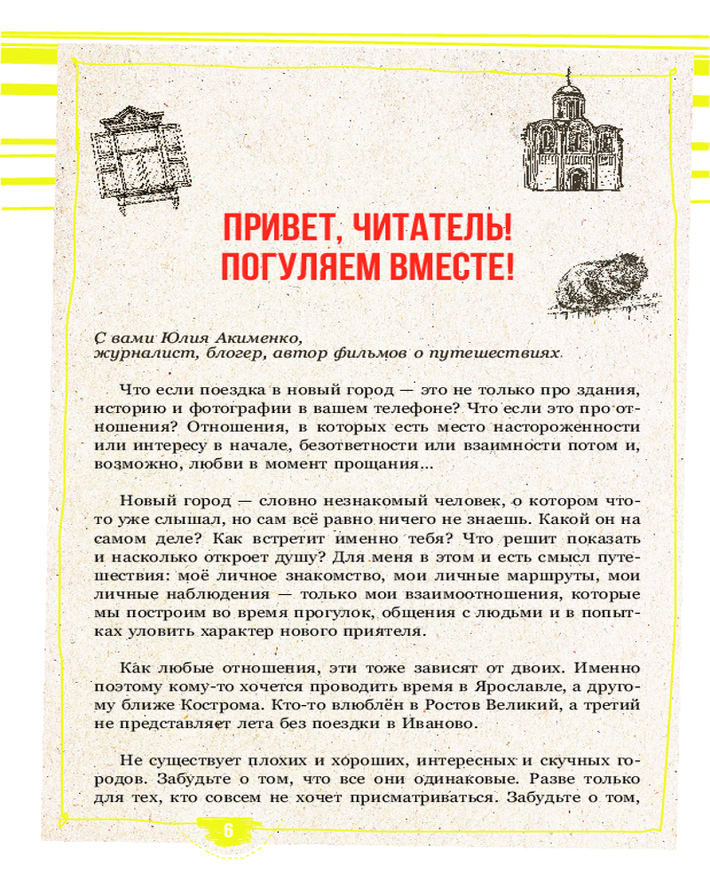 💳 Оплатить за товар можно при получении 🇰🇿 Есть бесплатная доставка по Казахстану от 1 дня 🎁 Копите бонусы с каждой покупки Серия: Пешком по городу Что если поездка в новый город — это не только про здания, историю и фотографии в вашем телефоне? Что если это про отношения? Отношения, в которых есть место настороженности или интересу в начале, безответности или взаимности потом. В этой книге я расскажу истории своих романов и дружбы. Ростов Великий, Ярославль, Кострома, Иваново, Суздаль, Владимир, Сергиев Посад и Переславль-Залесский — каждый город с характером, с чувством собственного достоинства. Да, они разные и каждый город требует внимания, определённого подхода, но в благодарность увлечёт интересными фактами о прошлом и душевным настоящим, где есть место как старине, так и современным проектам, модным пространствам. На карте нашей большой прогулки мы отметим не только топовые достопримечательности, но и пока мало раскрученные места. Для меня важно помочь вам с маршрутом, при этом также хочется передать атмосферу путешествия. Эта книга и для тех, кто любит историю, и для тех, кто ищет современную жизнь в древних городах, и для тех, кто просто хочет узнать больше о России. |