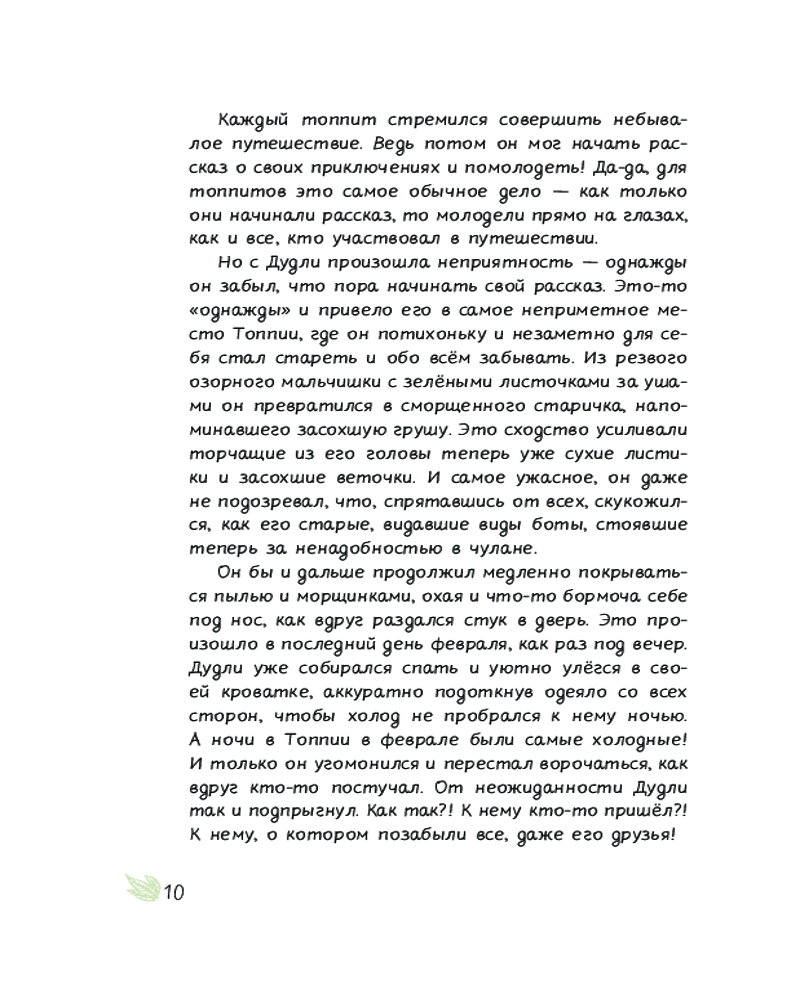 💳 Оплатить за товар можно при получении 🇰🇿 Есть бесплатная доставка по Казахстану 🎁 Копите бонусы с каждой покупки Серия: Топпиты Любишь ли ты путешествовать так, как это любят делать маленькие, но очень любопытные и невероятно отважные топпиты? Кто это такие, спросишь ты? Эти малюсенькие существа немного похожи на нас с вами, но за ушками у них листики, ростом они не больше мышки, а ещё они умеют говорить с Природой и просто обожают приключения! И немудрено — ведь когда-нибудь, вспоминая о своих великих путешествиях, они смогут помолодеть и... да-да, снова пуститься в путь. |