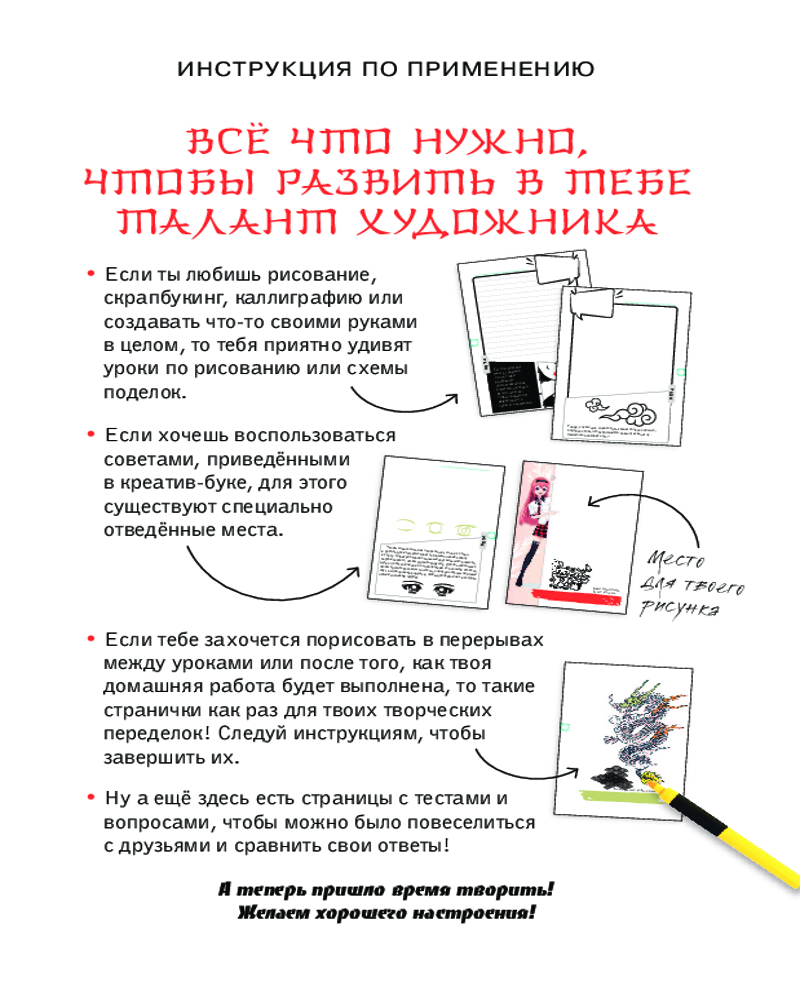 💳 Оплатить за товар можно при получении 🇰🇿 Есть бесплатная доставка по Казахстану от 1 дня 🎁 Копите бонусы с каждой покупки Серия: Только между нами Перед тобой не просто дневничок! Это креативное пространство, подсказывающее любителям манги и аниме идеи творчества и поделок в азиатском стиле. Планируй дела и параллельно учись рисовать мангу, знакомься с основными японскими понятиями, проверь свои знания и просто весело проведи время за раскрашиванием! |