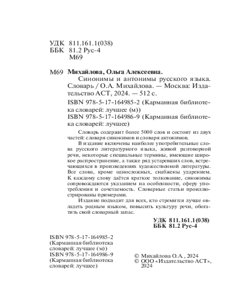В данный момент этот товар отсутствует в продаже. Возможно, у нас найдется аналогичный или похожий товар здесь. Серия: Карманная библиотека словарей: лучшее (м) Словарь содержит более 5000 слов и состоит из двух частей: словаря синонимов и словаря антонимов.