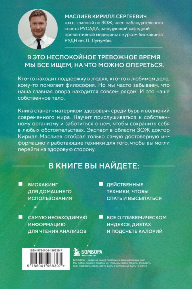 Серия: Биохакинг: книги с техниками, которые трансформируют тело и мысли В это неспокойное тревожное время мы все ищем, на что можно опереться. Кто-то находит поддержку в людях, кто-то в любимом деле, кому-то помогает философия. Но мы часто забываем, что наша главная опора находится совсем рядом. И это наше собственное тело. Книга станет «островком безопасности» среди бурь и волнений современного мира. Научит прислушиваться к собственному организму и заботиться о нем, чтобы сохранить себя в любых обстоятельствах.   |