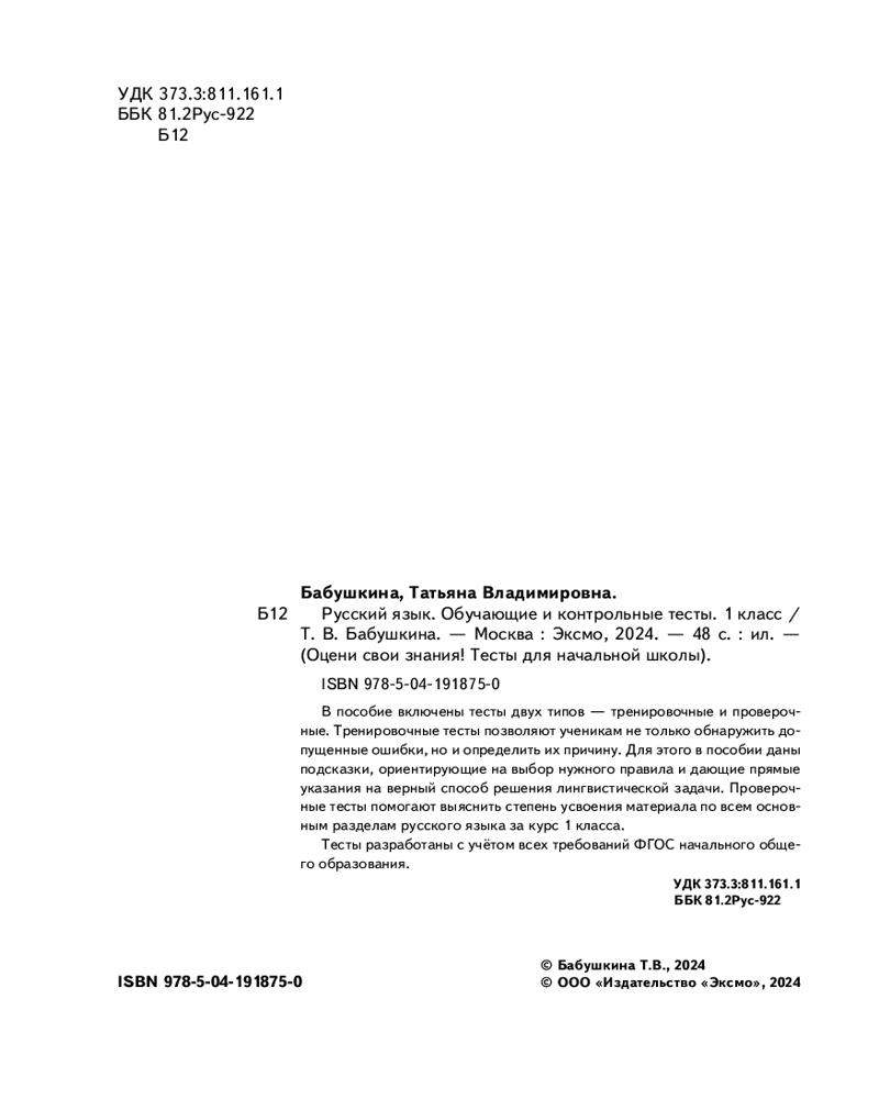 Русский язык. 1 класс. Обучающие и контрольные тесты-20% +17