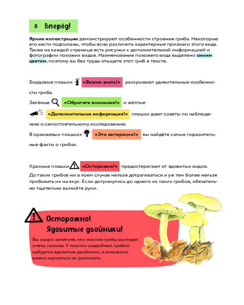 💳 Оплатить за товар можно при получении 🇰🇿 Есть бесплатная доставка по Казахстану 🎁 Копите бонусы с каждой покупки Серия: Атласы и энциклопедии. Краткий иллюстрированный справочник Уникальная энциклопедия для тех, кому интересен сбор грибов! Этот справочник-определитель содержит подробнейшие сведения о более чем 80 видах самых распространённых грибов России и других стран: места произрастания, особенности строения и внешнего вида, размеры, отличия съедобных грибов от несъедобных и ядовитых, а также практические советы о том, как и где их собирать и готовить. Цветовые обозначения и уникальная система символов, разработанная специально для этой книги, помогут читателю самостоятельно и безошибочно установить принадлежность того или иного гриба к определённому виду. Энциклопедия украшена яркими иллюстрациями и профессиональными фотографиями, которые позволяют разглядеть формы, цвета и детали грибов во всей красе. |