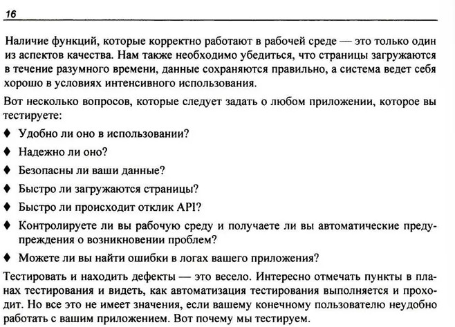 💳 Оплатить за товар можно при получении 🇰🇿 Есть бесплатная доставка по Казахстану от 1 дня 🎁 Копите бонусы с каждой покупки Рассматриваются базовая терминология и понятия в сфере тестирования ПО. Описываются ручное исследовательское тестирование, тестирование API, тестирование баз данных, кроссбраузерное тестирование, тестирование мобильных приложений, разработка стратегий тестирования, тестирование безопасности, производительности, юзабилити и доступности, показаны основы автоматизации тестирования. Уделено внимание созданию тест-планов, использованию системы управления версиями и работе с инструментарием Git.. Рассказано о принципах эффективной работы в команде. В книгу включены практические задания, призванные закрепить полученные знания. |