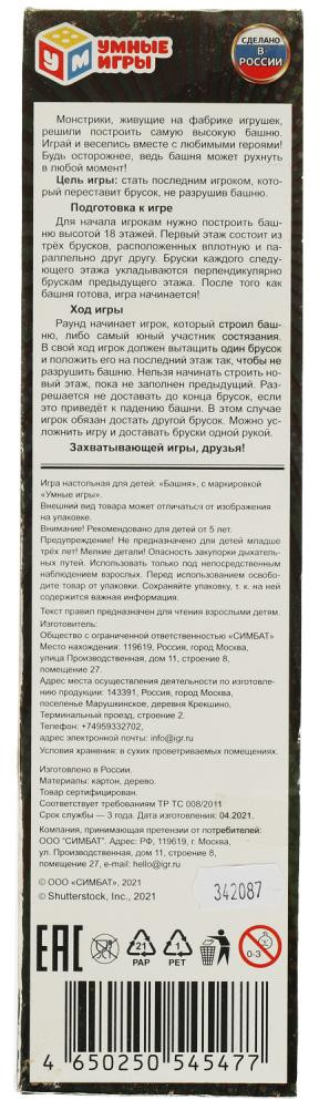 💳 Оплатить за товар можно при получении 🇰🇿 Есть бесплатная доставка по Казахстану 🎁 Копите бонусы с каждой покупки Серия: Приключения монстриков Игра «Башня. Приключения монстриков» ТМ «Умные игры» — интересное времяпровождение для детей и взрослых. Монстрики, живущие на фабрике игрушек, решили построить самую высокую башню. Ребёнок сможет поиграть и повеселиться вместе с любимыми героями, но нужно быть осторожнее — башня может рухнуть в любой момент! |