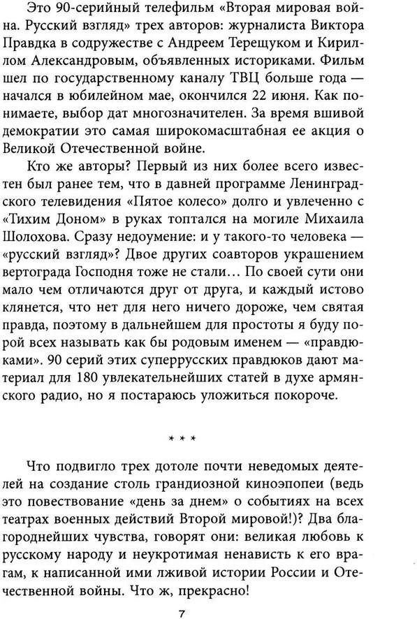 Злобный навет на великую ПобедуВ данный момент этот товар отсутствует в продаже. Возможно, у нас найдется аналогичный или похожий товар здесь. Серия: Советский век Владимир Сергеевич Бушин, писатель и публицист, сам прошел войну от Калуги до Кенигсберга, а потом еще воевал с японцами в Маньчжурии. В своей книге он пишет о том, как целенаправленно и планомерно искажается история Великой Отечественной войны в современных средствах массовой информации. С одной стороны, война стала своеобразным брендом в патриотической риторике власти, но с другой стороны, события войны представляются предвзято, с сильным антисоветским уклоном. Нам говорят, отмечает В.С. Бушин, что писали историю чекисты и выдали нам такую, в которой «нет ни капли правды». |