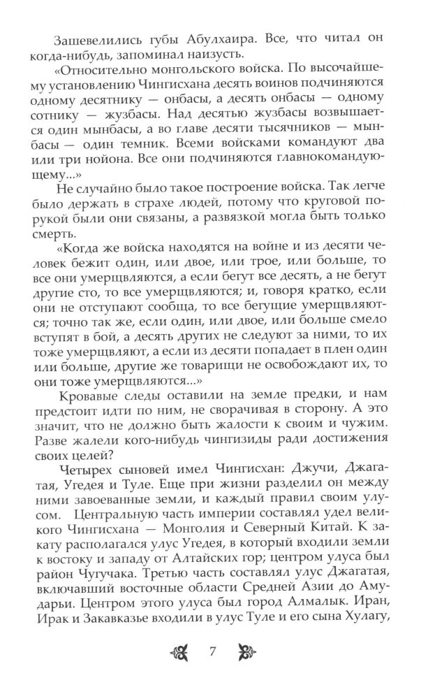 Данную книгу должен прочитать каждый казахстанец, чтобы знать когда и как образовалось наше государство. Через что прошли наши предки, дабы оставить нам эту землю. Все это можно прочитать в этой книге. Обложка и страницы книги сделаны из качественной бумаги (не газетная), мне нравится!