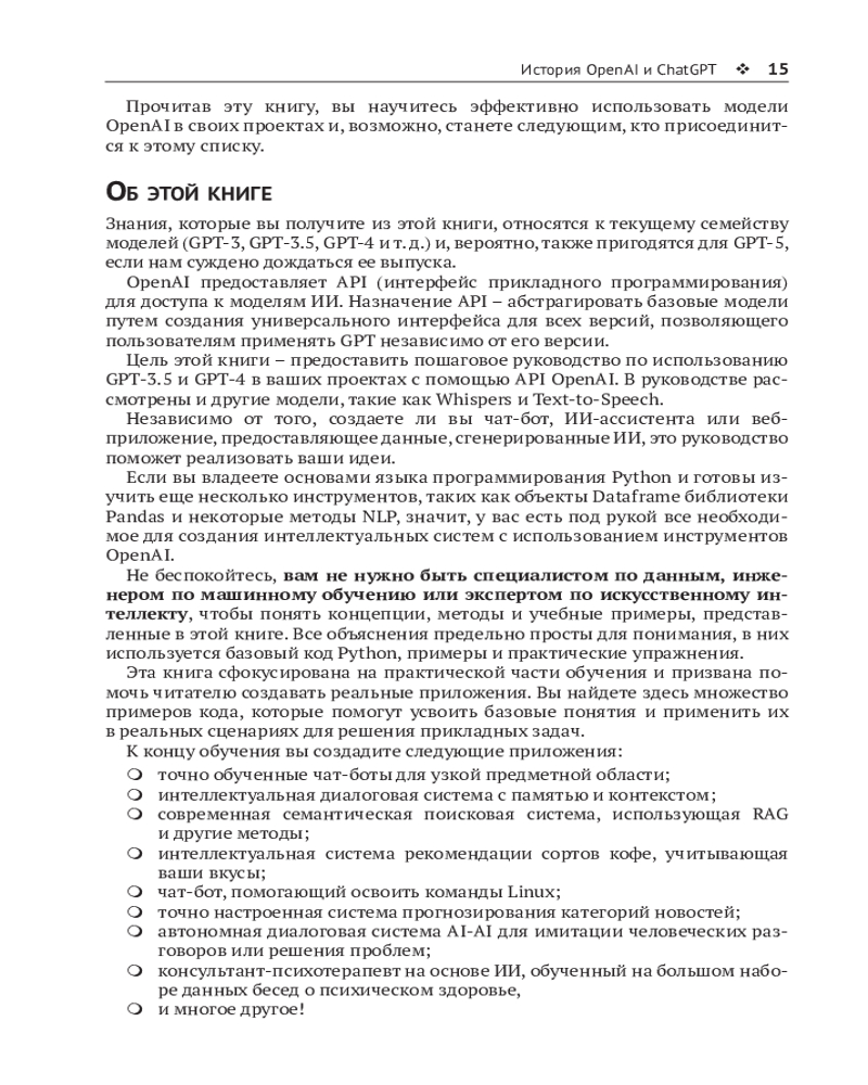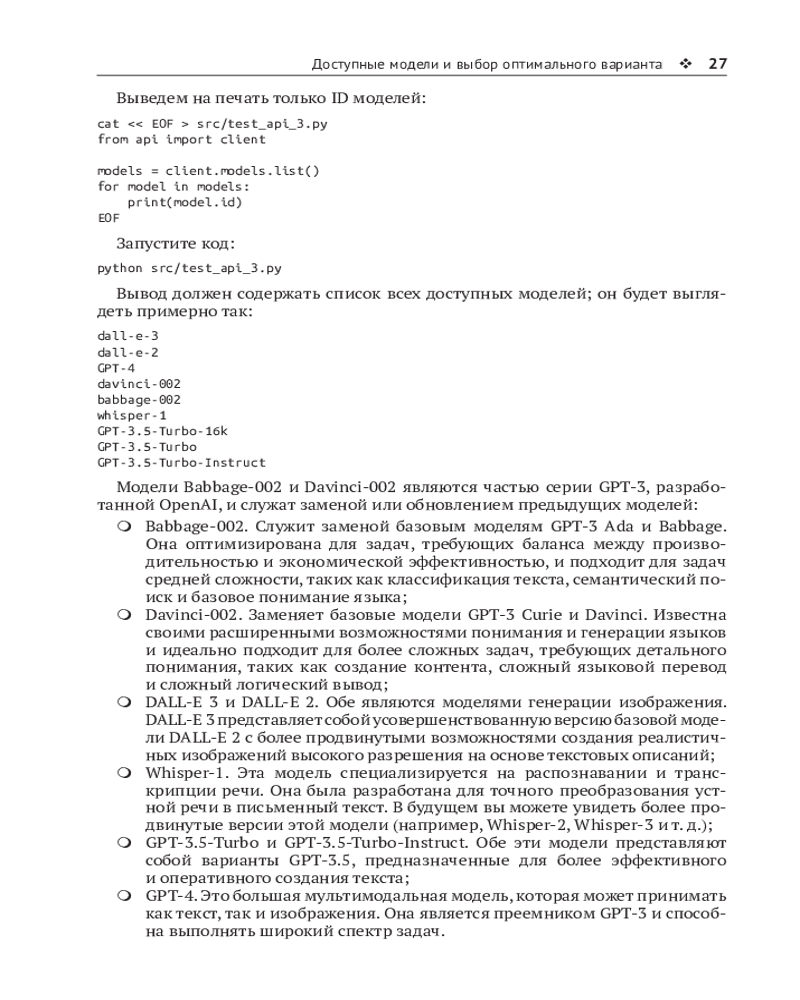 💳 Оплатить за товар можно при получении 🇰🇿 Есть бесплатная доставка по Казахстану 🎁 Копите бонусы с каждой покупки Книга представляет собой подробное пошаговое руководство по использованию моделей GPT-3/3.5/4 в ваших проектах. Оно охватывает также такие модели как Whisper и ТTS (преобразование текста в речь). |