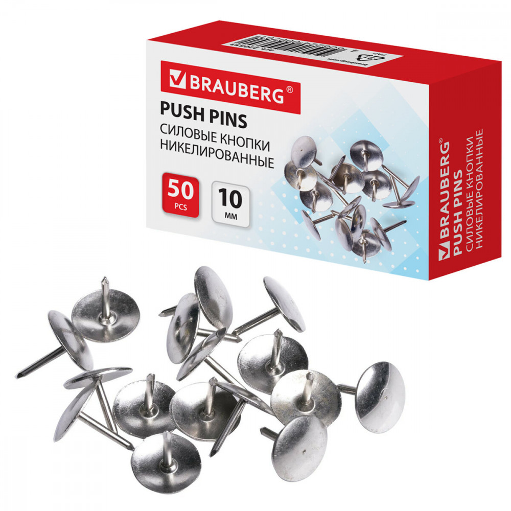 Кнопки канцелярские Brauberg используются для крепления бумаги на пробковые и фетровые доски, а также на другие поверхности. Кнопки со стальной шляпкой с цветным покрытием диаметром 10 мм и стальным острием длиной 9 мм. 50 штук в картонной коробке. Упростите выполнение задач с канцелярскими кнопками! Мгновения достаточно, чтобы закрепить, отметить или соединить. Возьмите под контроль рабочий процесс, ускорьте поиск информации и облегчите выполнение задач. Закажите канцелярские кнопки прямо сейчас и повысьте свою эффективность!