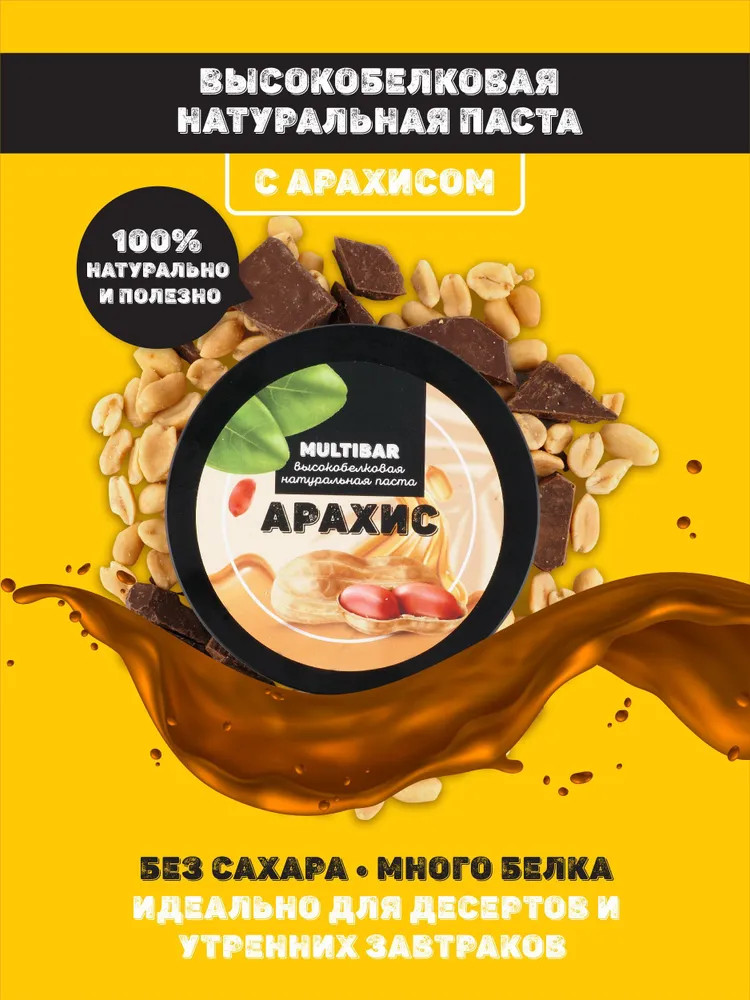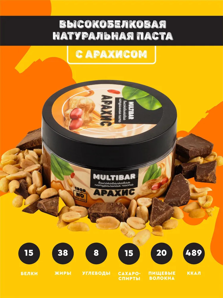 Multibar Паста шоколадная высокобелковая без сахара с арахисом