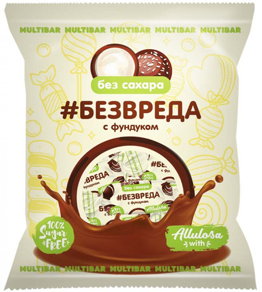Multibar Конфеты в молочно-шоколадной глазури без сахара с фундуком «Без вреда»