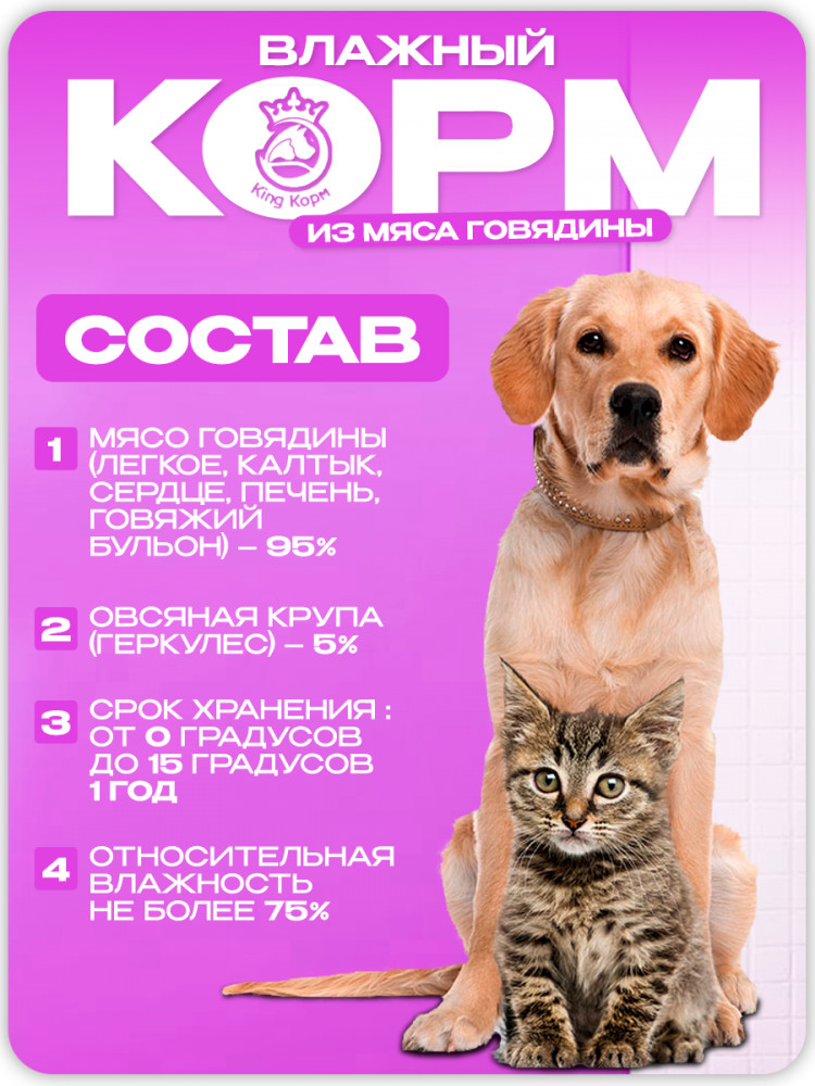 Корм для животных влажный со вкусом говядины | King Корм