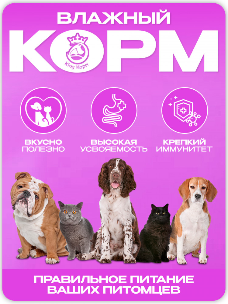 Представляем вам влажный универсальный корм для кошек и собак — идеальный выбор для ваших питомцев, который обеспечивает полноценное и сбалансированное питание. Наш корм разработан с учетом потребностей как кошек, так и собак, чтобы удовлетворить их вкусовые предпочтения и обеспечить оптимальное здоровье.