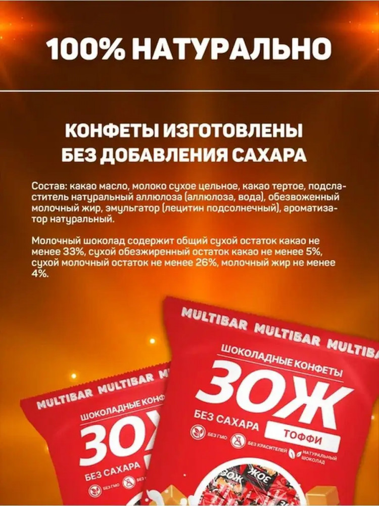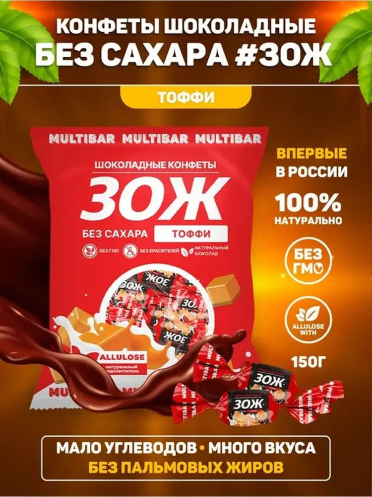 Multibar Конфеты шоколадные без сахара со вкусом тоффи «ЗОЖ»