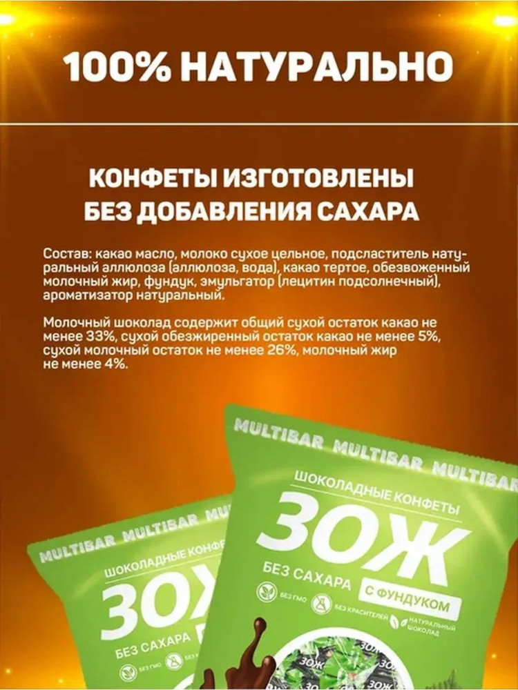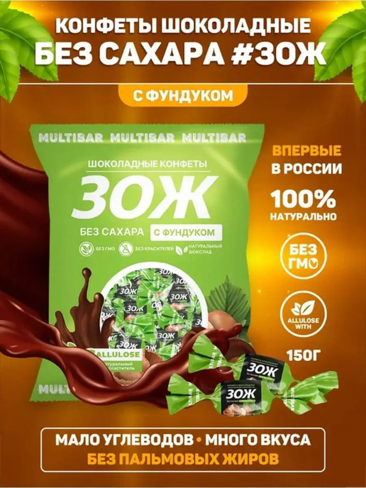Multibar Конфеты шоколадные без сахара с фундуком «ЗОЖ»