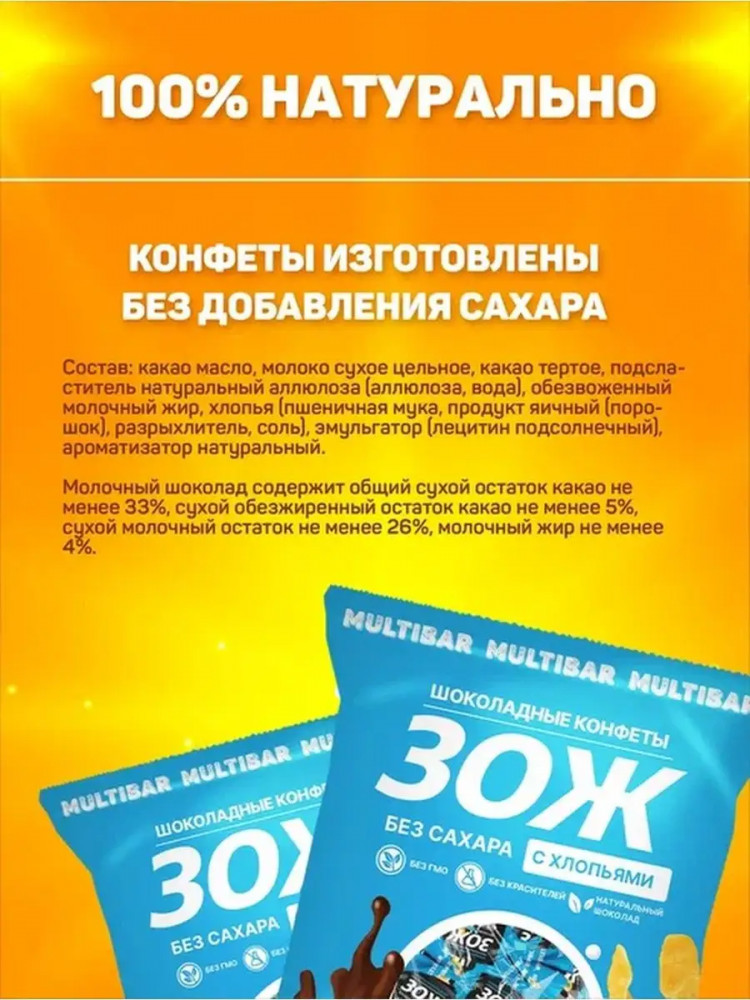 Multibar Конфеты шоколадные без сахара с воздушными хлопьями «ЗОЖ»