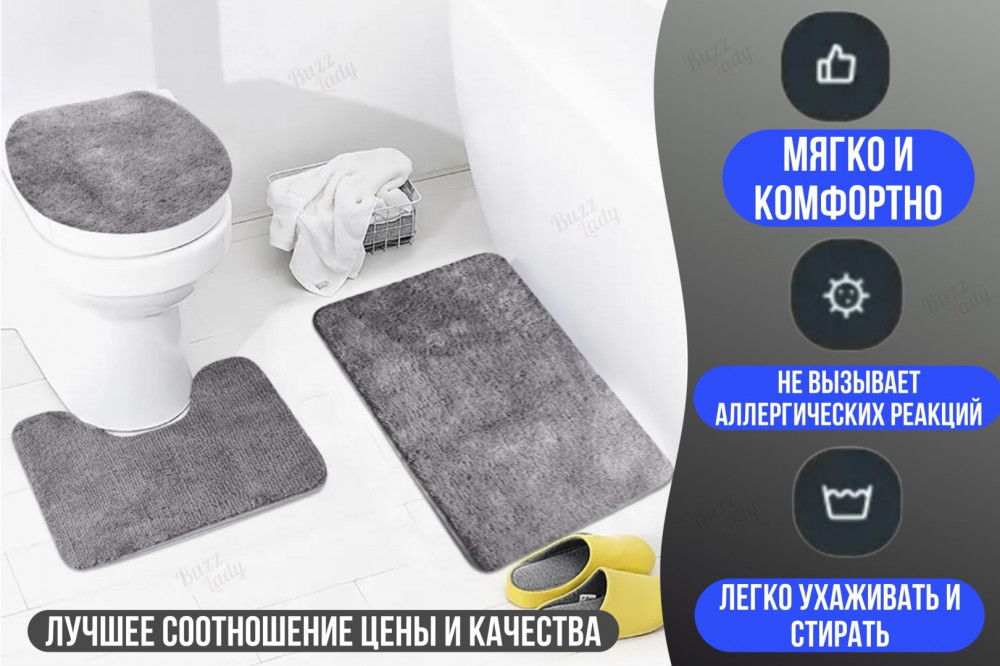 💳 Оплатить за товар можно при получении 🇰🇿 Есть бесплатная доставка по Казахстану от 1 дня 🎁 Копите бонусы с каждой покупки Набор антискользящих ковриков для ванной и туалета поможет Вам чувствовать мягкость и комфорт. Коврик для ног на противоскользящей основе выполнен из качественных материалов и имеет мягкое покрытие, наступать на него после душа будет приятно. Нескользящий прямоугольный ковер дополнит картину и преобразит вашу ванну. Накладка на крышку унитаза спрячет пластиковую сидушку туалета и создаст уютную атмосферу. Набор станет отличным подарком в разных случаях: на новоселье или день рождения друга, любимой бабушки или мамы. |