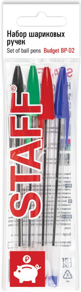 Staff Набор ручек шариковыхВ данный момент этот товар отсутствует в продаже. Возможно, у нас найдется аналогичный или похожий товар здесь. Набор шариковых ручек Staff «Basic Budget BP-02» — это надежные ручки для ежедневного использования. Ручки имеют прозрачный шестигранный корпус. Детали выполнены в цвет чернил. Длина корпуса 13,5 см. Диаметр пишущего узла 1 мм создает ровную линию письма, равную 0,5 мм. В наборе 4 цвета: синий, чёрный, красный, зеленый. Это товар эконом-сегмента, поэтому он отличается привлекательной ценой. Товар обладает базовым набором характеристик и простой упаковкой, при этом полностью соответствует основным требованиям потребителей. Набор шариковых ручек Staff «Basic Budget BP-02» — незаменимый помощник для учебы и работы по выгодной цене. Приобретайте шариковые ручки Staff и оцените их качество и удобство использования! |