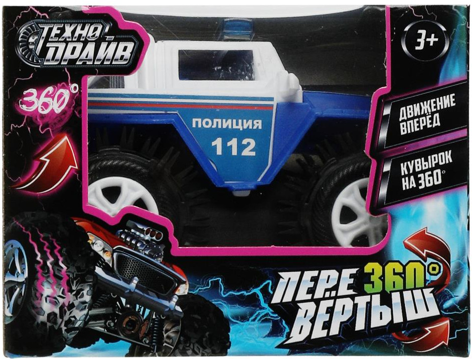 Технодрайв Машина-перевертыш «Полиция»В данный момент этот товар отсутствует в продаже. Возможно, у нас найдется аналогичный или похожий товар здесь. Машина-перевёртыш «Полиция» ТМ «Технодрайв» станет отличным подарком для вашего ребёнка. Яркая машина-перевёртыш непременно понравится юному автолюбителю. Рельефные колёса гарантируют крепкое сцепление с поверхностью и предохраняют от «аварий» во время быстрой езды. При столкновении с препятствием игрушка эффектно переворачивается на 360 градусов. Игра с машинкой-перевёртышем ТМ «Технодрайв» тренирует: координацию движений, внимание, ловкость. |