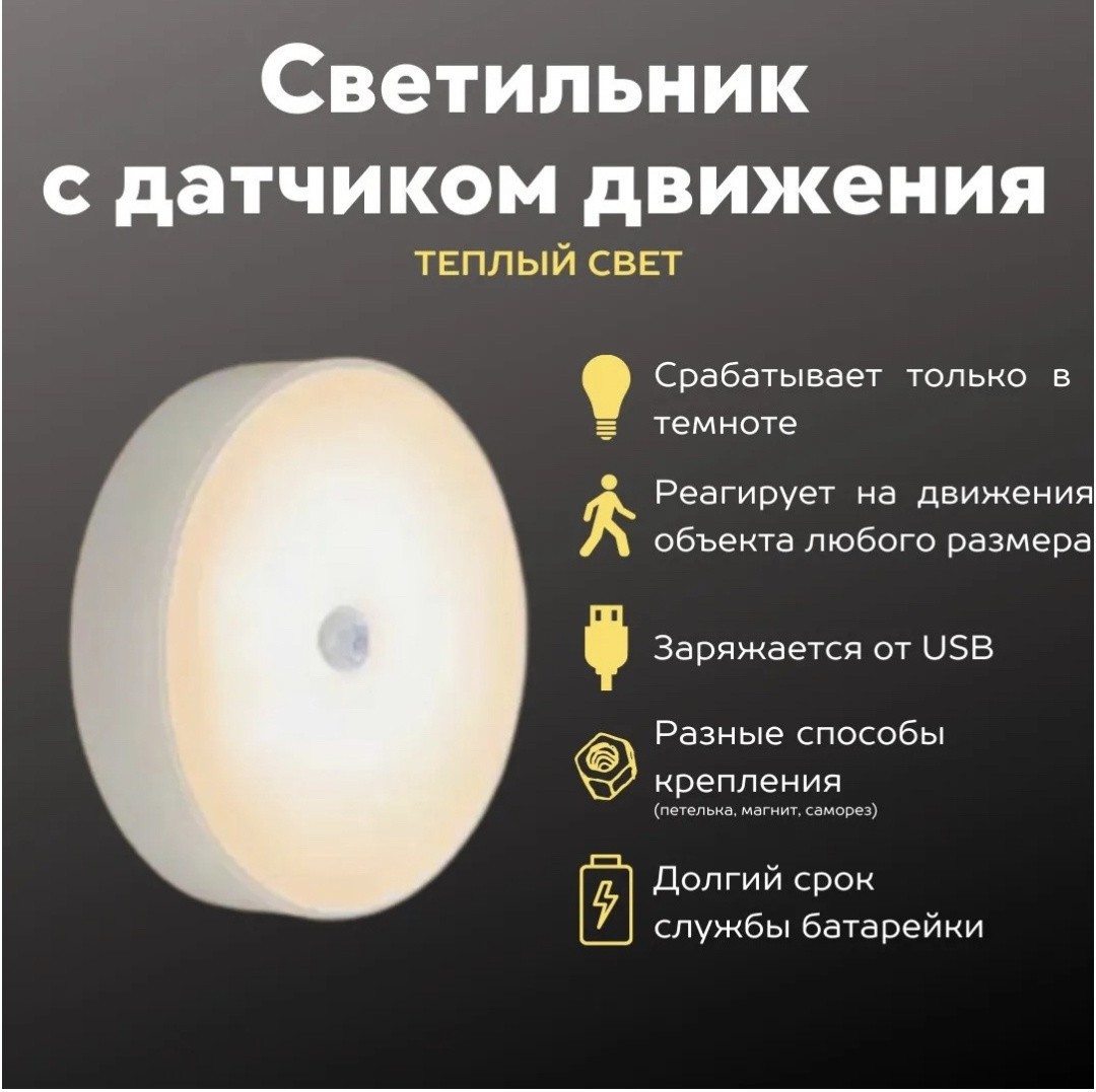 💳 Оплатить за товар можно при получении 🇰🇿 Есть бесплатная доставка по Казахстану от 1 дня 🎁 Копите бонусы с каждой покупки Ночник на аккумуляторной батареи реагирует на движения. Заряжается от провода (в комплекте, но без вилки). Идеально подойдет для кухни, туалетной комнаты, гардеробной. Крепится на магните или можно подвесить на веревке (нет в комплекте). |