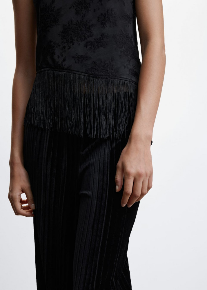 55% вискоза, 40% полиэстер, 5% эластан (бахрома: 100% полиэстер)