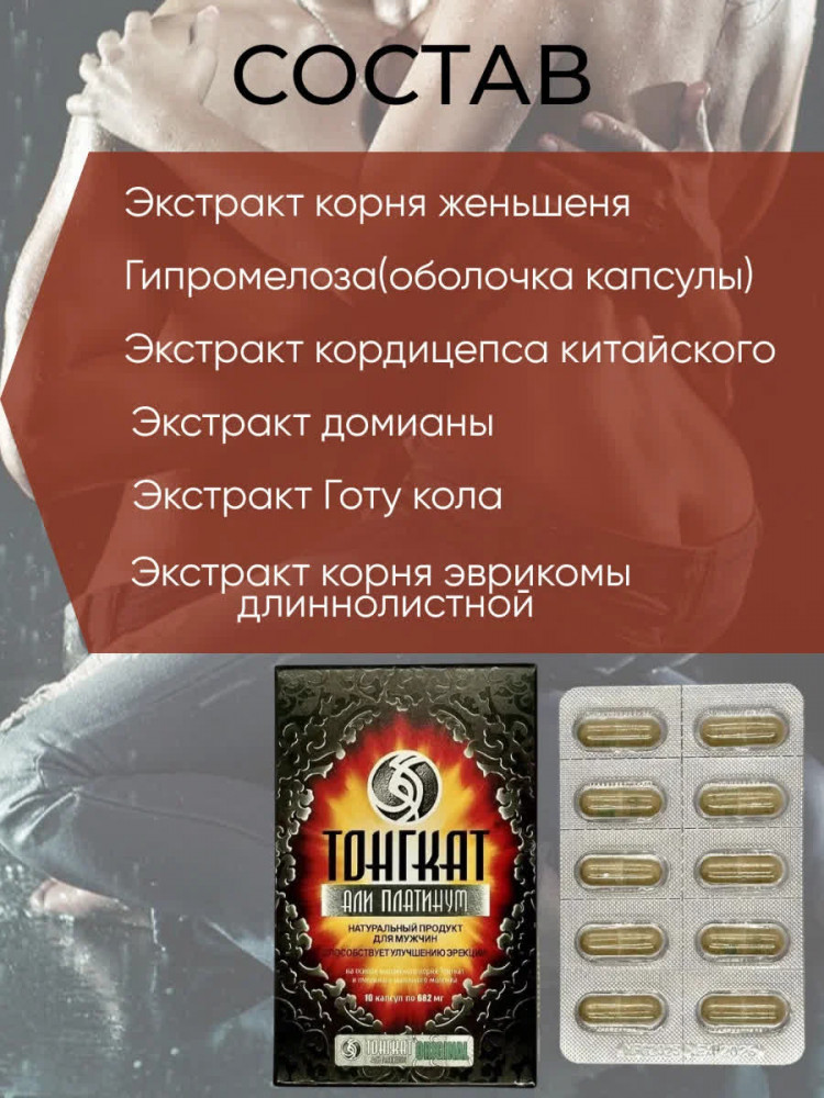 Капсулы для повышения потенции Тонгкат Али Премиум 10 капсулВ данный момент этот товар отсутствует в продаже. Возможно, у нас найдется аналогичный или похожий товар здесь. «Тонгкат Али Премиум» — усиленная формула легендарного бренда. Это натуральный продукт для мужчин на основе малайзийского корня Тонгкат, Икариина и комплекса активных биокомпонентов. Они способствуют повышению мужской силы, а также поддержанию здорового и энергичного образа жизни у мужчин. Тонгкат Али Премиум содержит быстро усваиваемые биологически активные соединения, которые благоприятствуют сексуальной активности, усилению потенции, достижению мощной стойкой эрекции, усилению желания, ощущений и яркости оргазма, а также увеличению продолжительности полового акта. Входящие в состав БАД ингредиенты стандартизированы по содержанию биологически активных ингредиентов для достижения максимального результата, они стимулируют механизмы естественного восстановления мужского организма и усиления мужских показателей. |