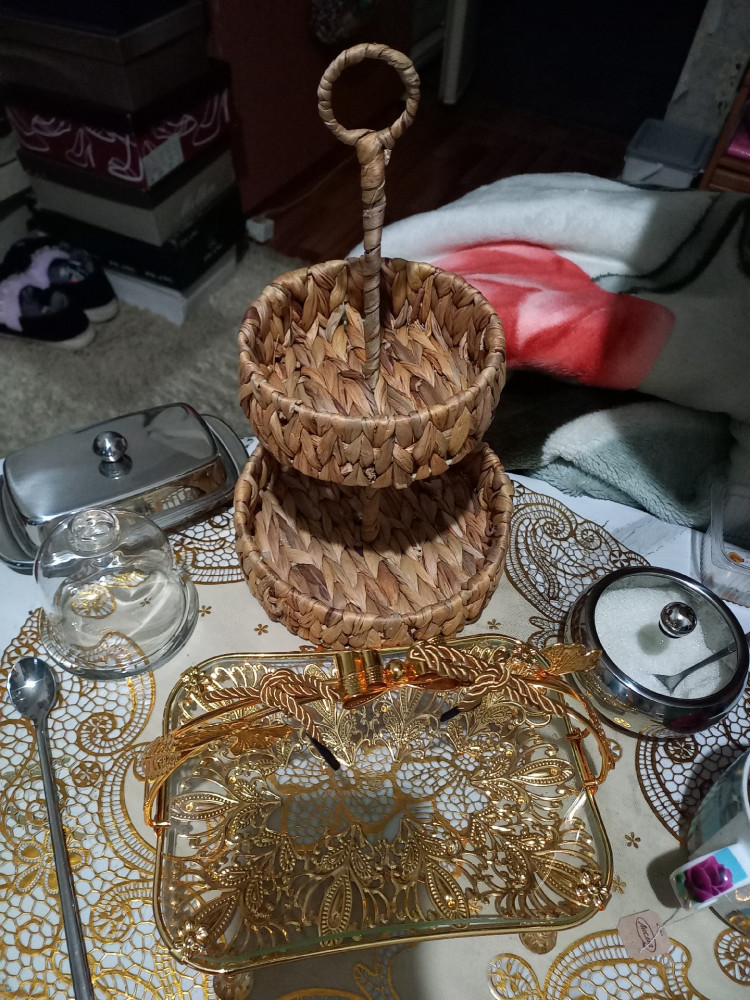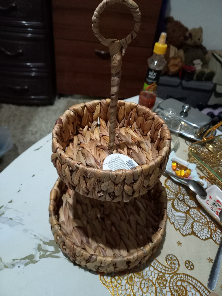 El Casa Этажерка 2-х яруснаяВ данный момент этот товар отсутствует в продаже. Возможно, у нас найдется аналогичный или похожий товар здесь. Двухъярусная этажерка ELCASA 20 × 20 × 33 см изготовлена из высушенных стеблей и листьев водного гиацинта. Имеет прочный металлический каркас. Размеры плетёных блюд: 20 × 20 × 5.5 см и 15 × 15 × 5.5 см. Расстояние между ярусами — 12 см. Натуральный цвет изделия подчеркивает органичность и гармонию с окружающей средой. Каждый ярус имеет бортик. Этажерку можно использовать для сервировки фруктов, конфет, леденцов и других сладостей в индивидуальной упаковке. Подойдёт не только для кухни. В спальне или прихожей её можно использовать как органайзер под любые мелочи: украшения и заколки, лаки для ногтей или ключи. На двух круглых ярусах с бортиками можно хранить нитки и предметы для рукоделия. Изделия из водного гиацинта не выгорают на солнце. Не рекомендуется применять абразивные моющие средства. Интерьерный плетеный органайзер станет приятным подарком для мамы, бабушки, подруги или сестры на любой праздник. Плетёная этажерка украсит интерьер вашего дома и поможет создать порядок и уют в любом пространстве! |