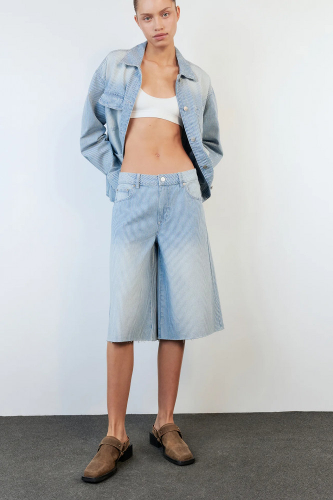 В тренд y2k возвращаются бриджи. Стильные и очень удобные джортсы идеально сочетаются с любыми топами, майками, футболками и рубашками и составят отличную основу твоего весенне-летнего гардероба. Сочетай эти бермуды с костюмной жилеткой на голое тело, следуя трендам этого лета. Универсальные и практичные джинсовые шорты, с которыми можно составить несчетное количество аутфитов в любом стиле и под любое настроение. идеально сочетаются с джинсовой рубашкой из комплекта.