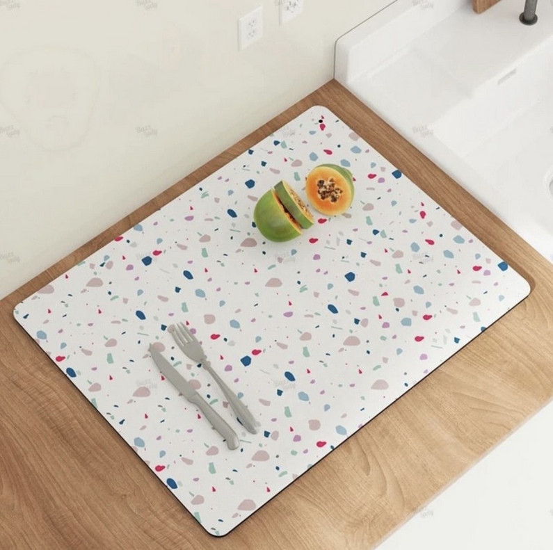 💳 Оплатить за товар можно при получении 🇰🇿 Есть бесплатная доставка по Казахстану от 1 дня 🎁 Копите бонусы с каждой покупки Супер впитывающий универсальный коврик для сушки посуды из природного материала диатомита. Природный материал диатомит, из которого изготовлен коврик, позволяет моментально впитывать влагу и быстро ее испарять, при этом столешница остается сухой, а прорезиненный нижний слой не позволяет ему скользить и падать. Коврик не имеет запаха, не трескается и не крошится. За ковриком для посуды очень легко ухаживать: достаточно просто помыть его водой с любым моющим средством и дать высохнуть естественным путем. Не рекомендуется сушить коврик на солнце. |