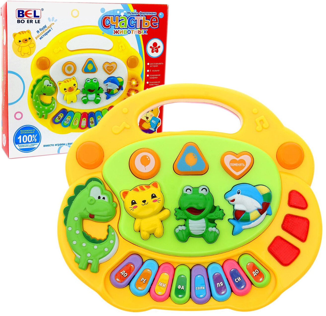 Bo Er Le Пианино детское «Счастливые животные»В данный момент этот товар отсутствует в продаже. Возможно, у нас найдется аналогичный или похожий товар здесь. Музыкальное развивающее пианино на батарейках — увлекательная игрушка и одновременно простейший музыкальный инструмент. Не требует никаких специальных навыков и доставляет детям массу удовольствия. Яркое, красочное оформление прибавляет пианино дополнительных очков в глазах малышей. Игрушка абсолютно безопасна для вашего малыша. |