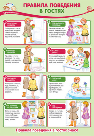 Каждый ребенок хочет быть воспитанным и культурным, да и родители мечтают о том, чтобы их ребенок вел себя достойно в любой ситуации. А что понимается под этим в каждом конкретном случае? Как должен поступать воспитанный, знающий, что такое хорошо, а что такое плохо, маленький человек? Одному из этих вопросов посвящен данный плакат, который поможет ребенку освоить тонкости гостевого этикета. |