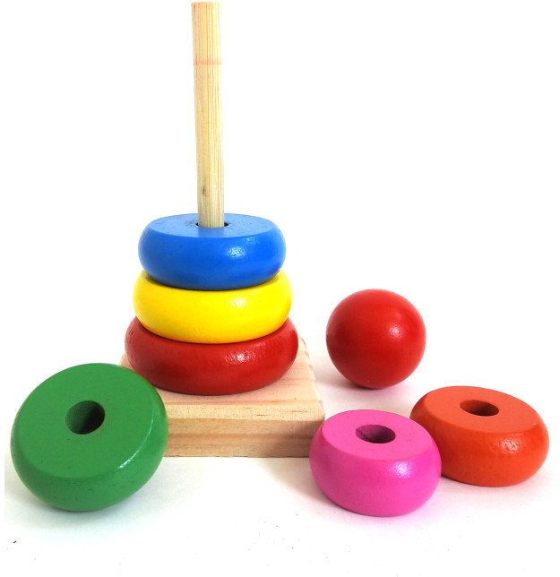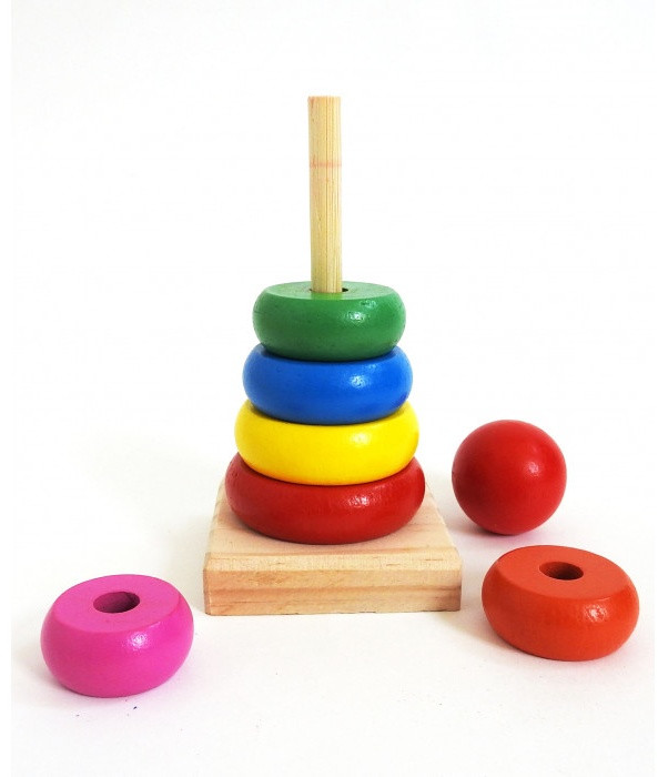 ZERDE ПирамидкаВ данный момент этот товар отсутствует в продаже. Возможно, у нас найдется аналогичный или похожий товар здесь. Игрушка пирамидка ZERDE представляет собой деревянную пирамидку с 6-ю разноцветными кольцами на устойчивом основании. Кольца последовательно нанизываются на стержень (от большого — к маленькому), а сверху закрепляются красным шариком. Игрушка послужит прекрасным тренажером и дидактическим пособием для малышей. С ее помощью ребенок будет не только развивать мелкую моторику рук, но и учиться различать основные цвета и соотносить колечки по габаритам. |
