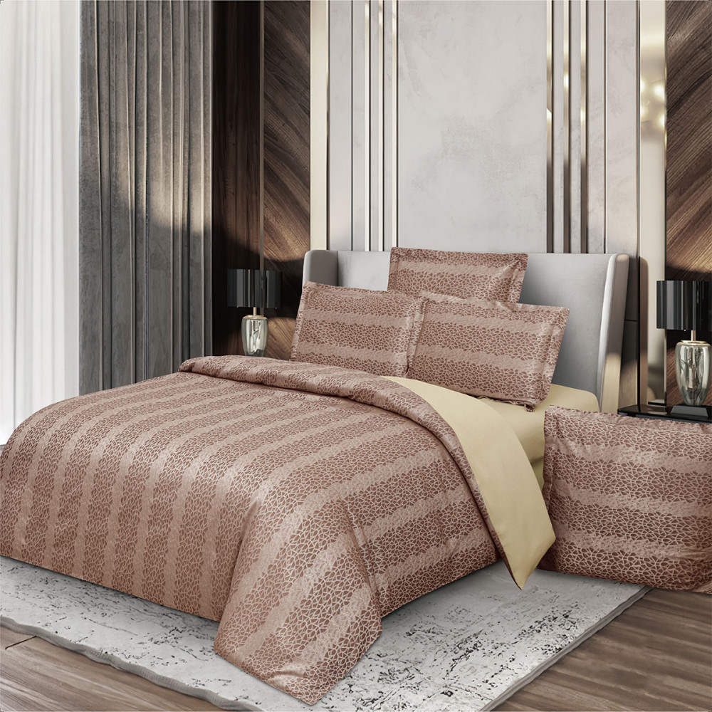 Постельное бельё коллекции Versailles производится из жаккардового сатина. При изготовлении жаккардовых тканей используется пряжа из высококачественного длинноволокнистого хлопка, именно поэтому ткань имеет благородный блеск и удивительно нежную шелковистую поверхность. Коллекция Versailles предназначена для людей, ценящих роскошь и стиль и предпочитающих традиционно однотонные расцветки с выбитым шелковистым рисунком. Верх изделия: 50% хлопок, 50% полиэстер (пододеяльник, наволочки). Обратная сторона изделия — 100% хлопок (пододеяльник, наволочки), простыня — 100% хлопок. |